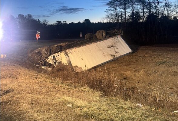 State Police say the truck drifted off the right side of the roadway, striking an embankment, before overturning off the roadway.
