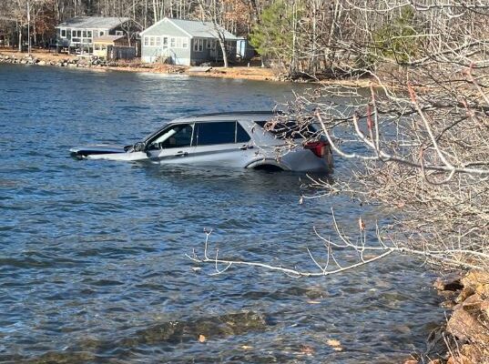 Driver Not Injured After SUV Ends Up in Acton Pond