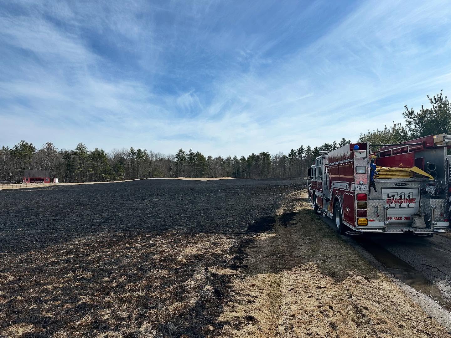 There’s no continued threat after a grass fire burned nearly nine acres in South Berwick Sunday afternoon.