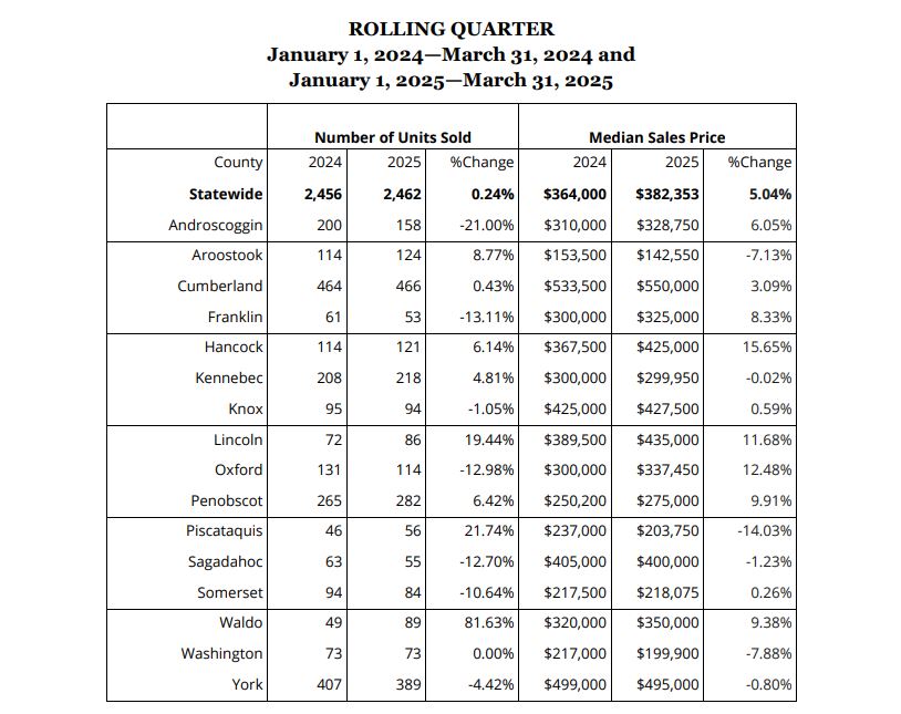 In the county-by-county comparisons, Cumberland County held its spot as Maine’s most expensive county with a median sale price of $550,000.