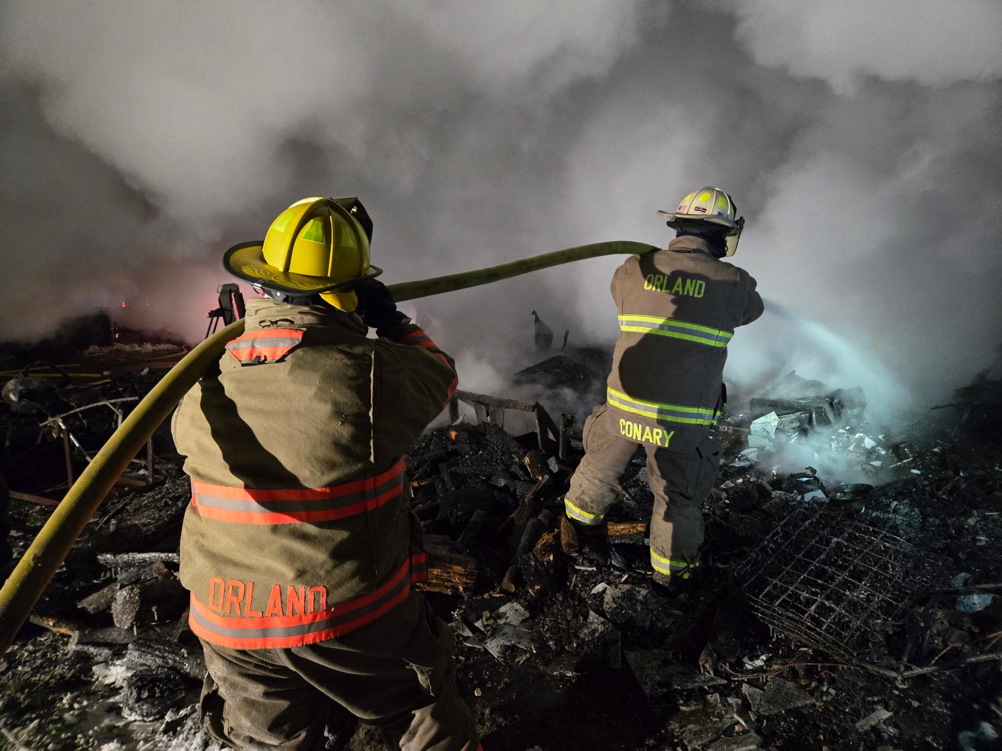 The Orland Fire Department says it was assisted by four other departments – from Bucksport, Orrington, Penobscot, and Castine – in battling the fire on Foss Farm Road.