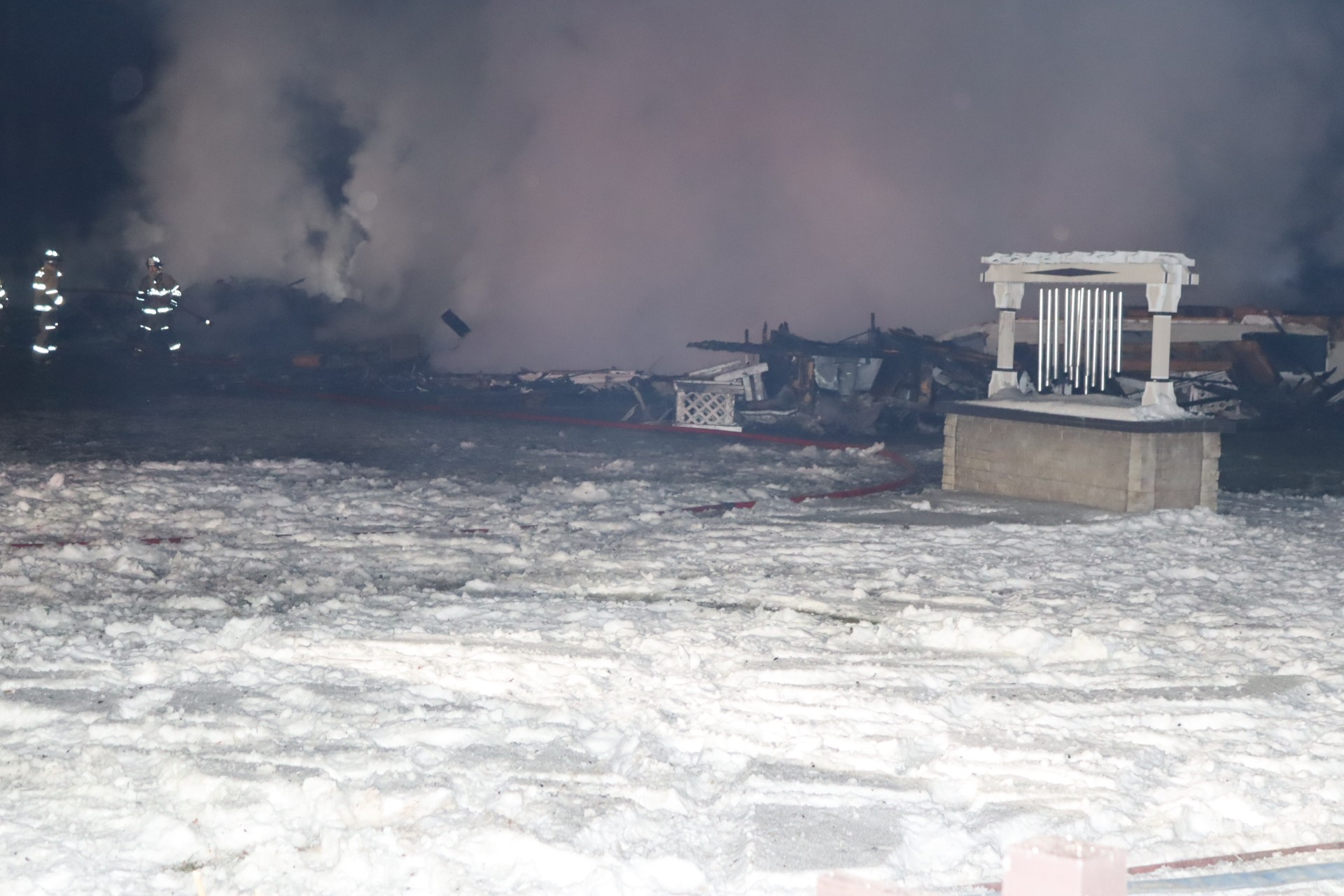 A home in Wayne, west of Augusta, is destroyed from a heavy fire, which drew assistance from several area fire departments Tuesday night.