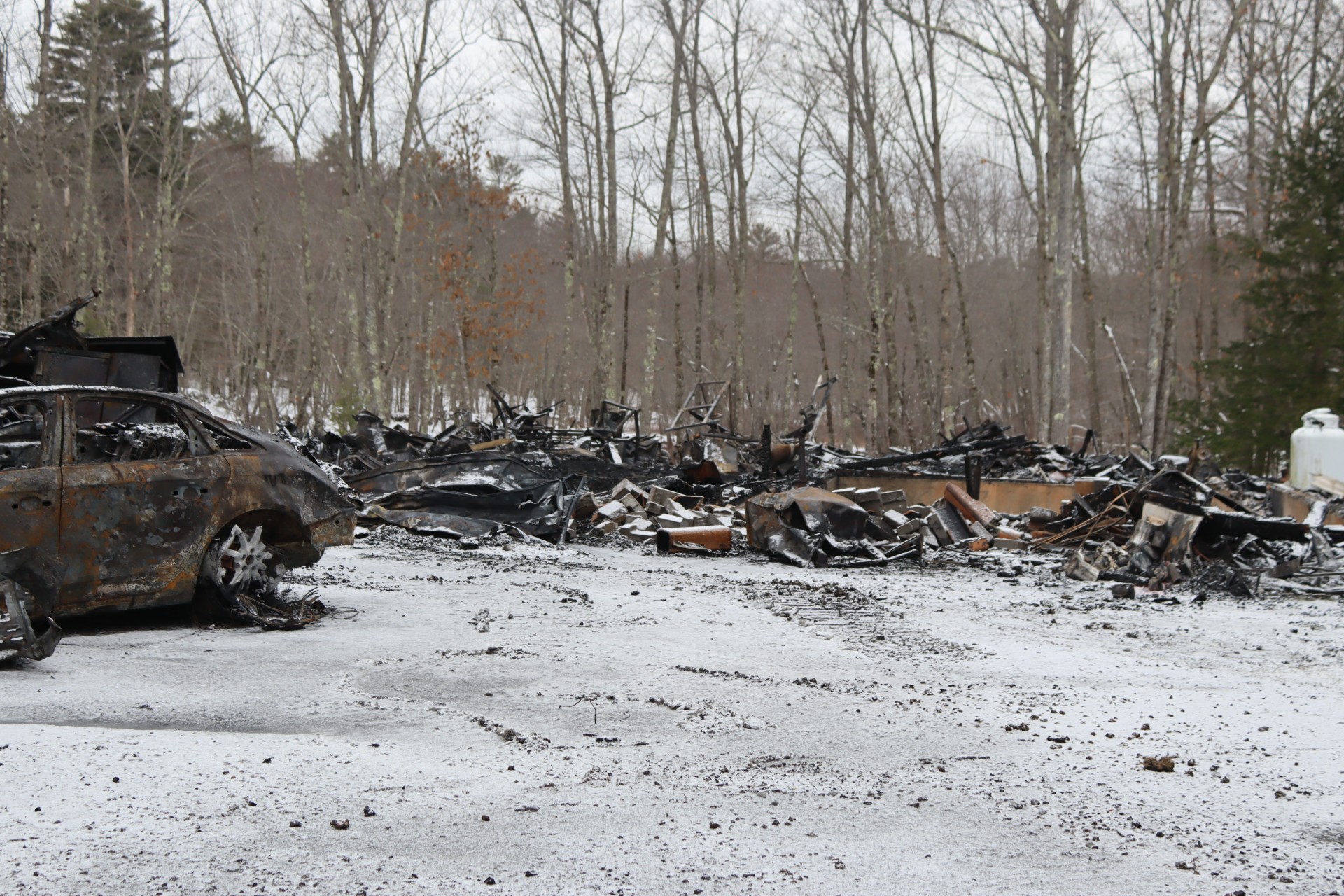 The home was completely leveled in the fire and images indicate a nearby vehicle was also destroyed.