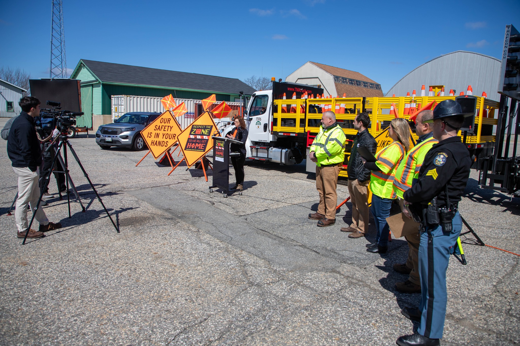 Maine State Police, AAA and the Maine Turnpike Authority all spoke at a gathering at the Turnpike Maintenance Facility in Gardiner Thursday.