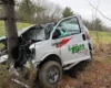 Maine State Police say a U-Haul rental van left the northbound lane on I-95 Tuesday morning, going airborne and hitting a tree.